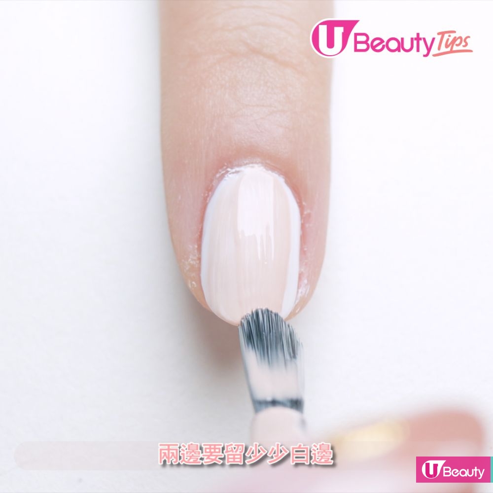 在指甲末端大約1/3位置塗上指甲油,再加飾品點綴。