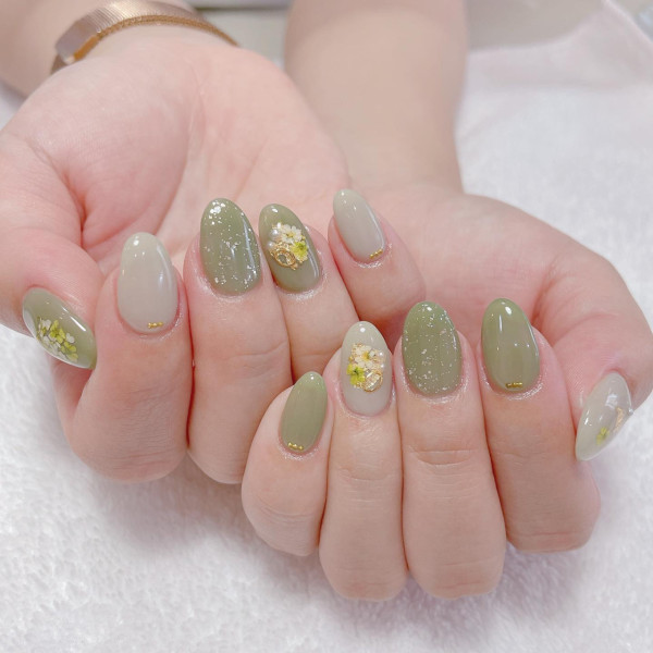 2026美甲款式推薦|18. 乾花美甲款式