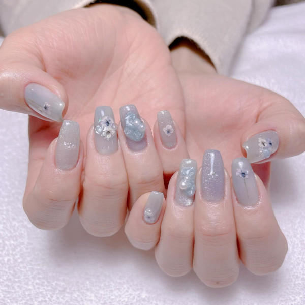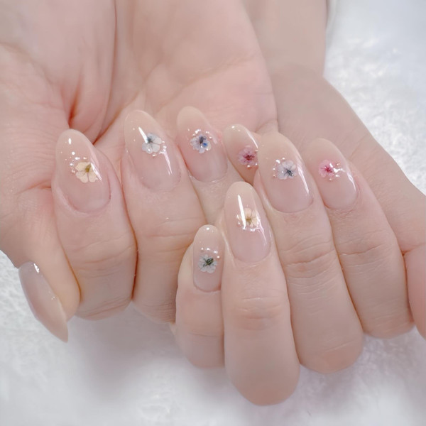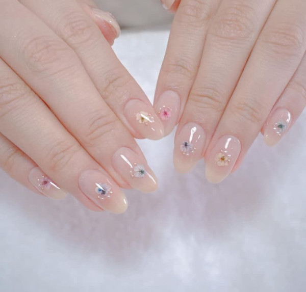 乾花美甲通常使用透明的指甲膠或膠水將花朵固定在指甲上,相比於一些貼紙,乾花更具耐久性,不易脫落或磨損。大家可以根據自己的喜好和風格選擇花朵的種類、顏色和排列方式,甚至可以將多種花朵結合在一起創造出獨特的圖案和設計,還可以結合其他美甲款式,如漸層、珠片、貼紙等,適合溫柔又想要簡單款式的女生!