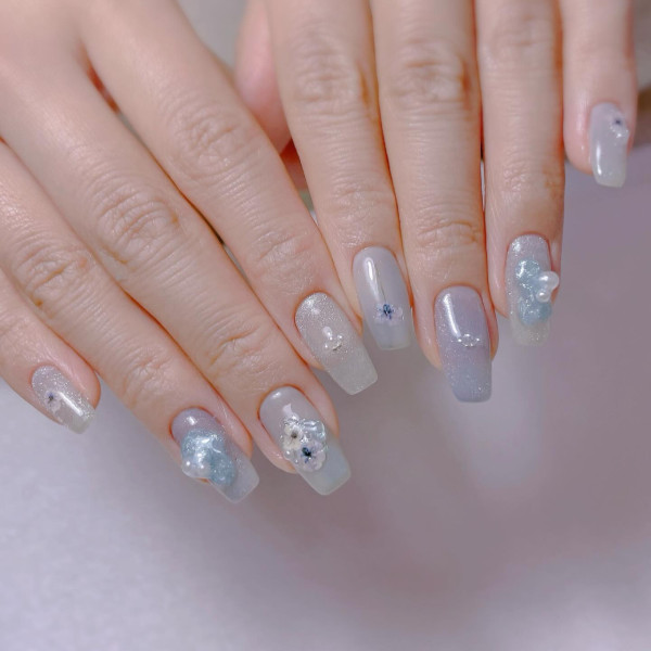冰透藍美甲是今年大熱美甲款式之一,帶著透明感的藍色系美甲,在視覺上營造出涼爽舒適的感覺,最適合炎炎夏日!想加添多一點變化?可以疊加鑽石、貝殼或採用局部暈染的方式,提升光澤的同時,修飾手指線條,讓雙手看起來更加光滑透亮!