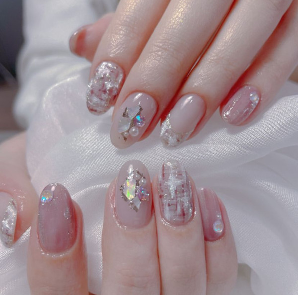 誰說閃石的美甲款式容易顯得誇張?近來日韓美甲界掀起「戒指美甲」的潮流。這種美甲以裸色為基調,在幾隻指甲上精心綴以少量的閃石、閃片、立體浮雕圖案或小珠粒,巧妙結合奢華與低調元素,整體看起來華麗卻不俗氣,瞬間變成高貴大小姐,特別適合追求輕奢華美甲風格的人士,亦適合派對和節日場合!另外華麗閃石美甲款式亦是人氣的新娘美甲選擇,為造型增添一抹精緻的奢華感。