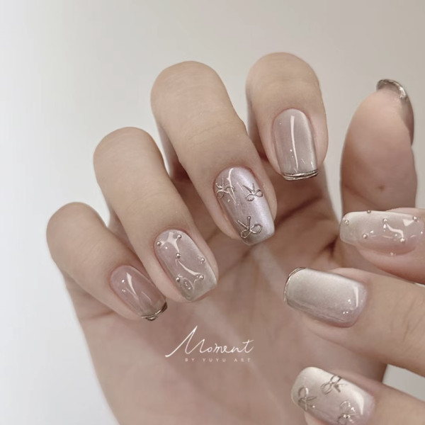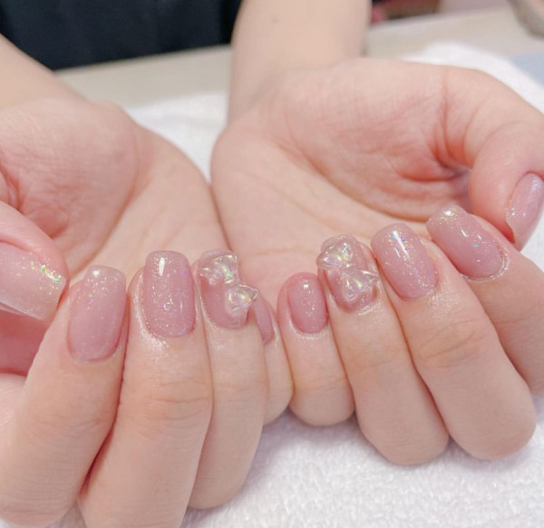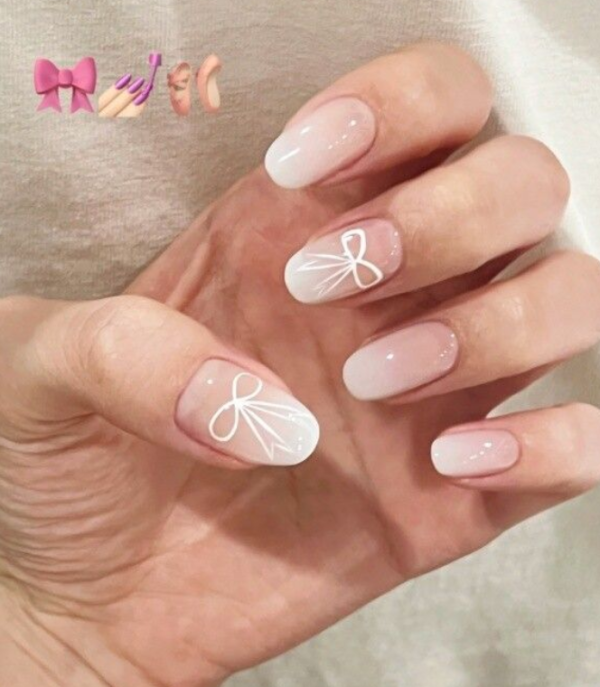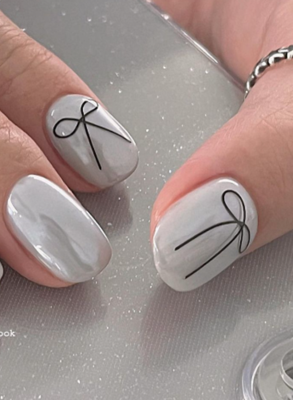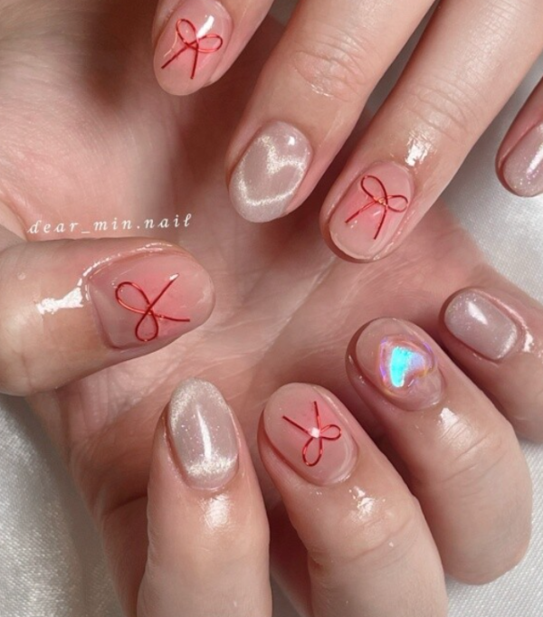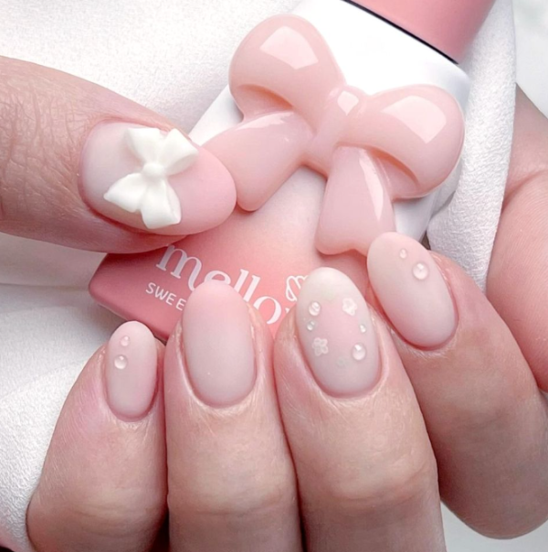 2026美甲款式推薦|33.韓式蝴蝶結美甲