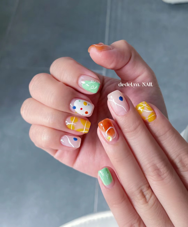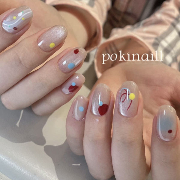 2026美甲款式推薦|34.亮色圓點美甲