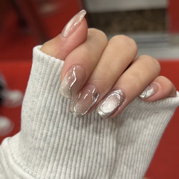 2026美甲款式推薦|15. 金屬鍍鉻Gel甲