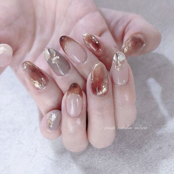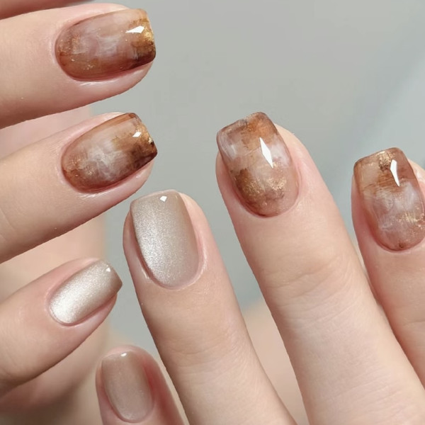 2026美甲款式推薦|12. 美拉德風美甲款式
