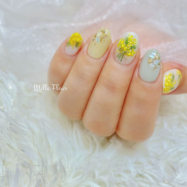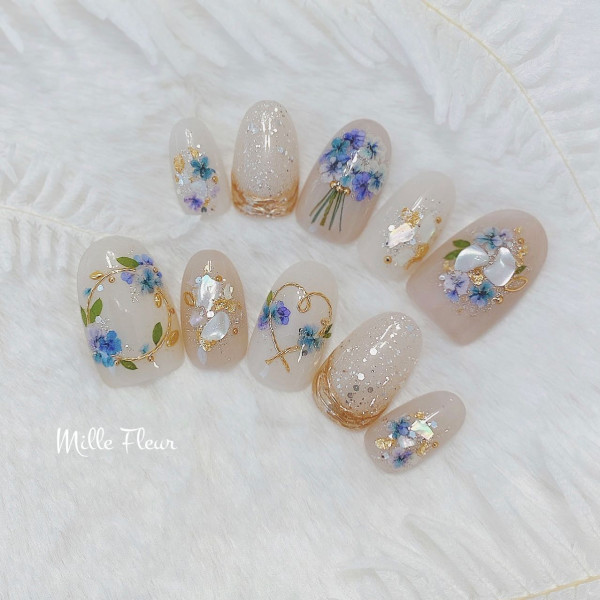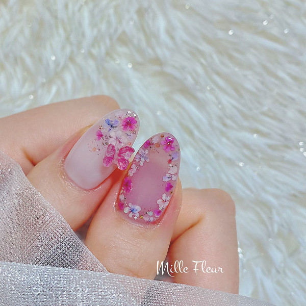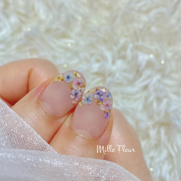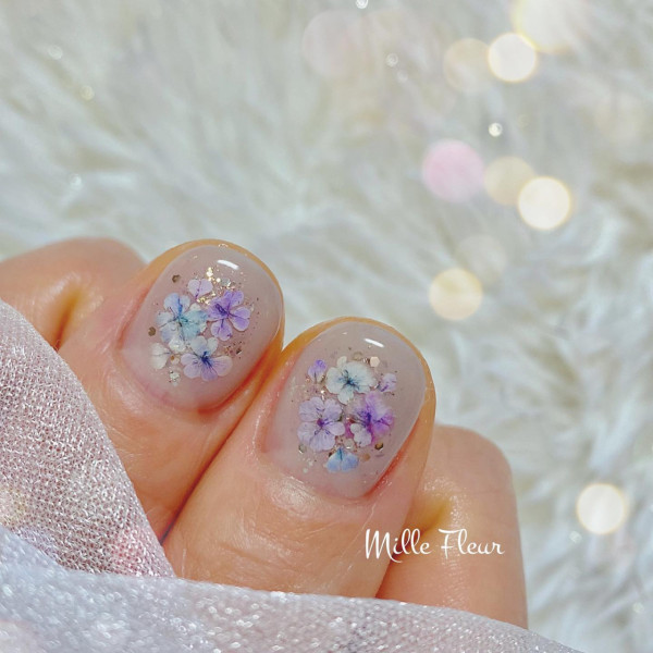 沉寂了一段時間的乾燥花,今年重磅回歸!溫柔的淺粉色、漸層裸透粉色打底,搭配著繽紛柔和的乾燥花,無論是風吹般灑落指面,或者法式點綴排列在指尖,任何年紀都能輕易駕馭,讓美甲更具獨特的輕浪漫感!