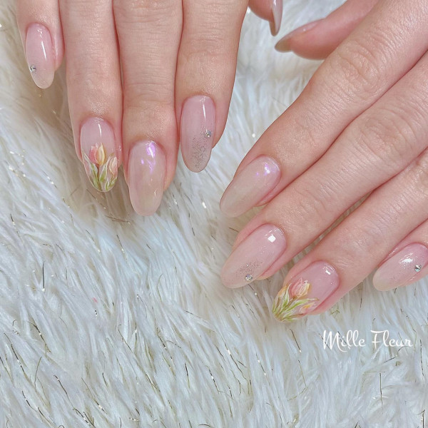 鬱金香絕對是韓國女生最愛的花系圖案排名前三!以淡雅又輕柔的透明感色彩為底,配搭細緻的手繪鬱金香,氣質感滿分;喜歡帶點個性風格的款式,不妨試試以手工繞出的鬱金香圖案,絕對讓指尖更充滿時尚感!