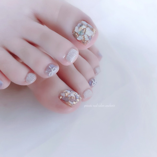 喜歡有點童趣感嗎?那就選它吧,也是韓國女生每到夏日不能缺席的指定款!顏色可以依照個人喜好決定主色調,並把重點聚焦在大拇趾的甲片上,並以主色手繪上愛心、花朵、蝴蝶結等等,是這季人氣很高的元素,不用刻意畫得很工整是重點,簡單為足部美甲注入一絲小童趣感,也非常搶眼~