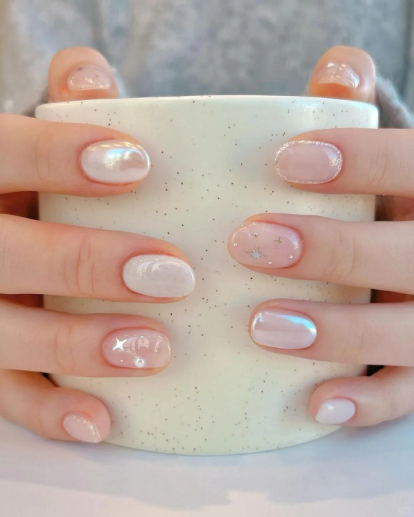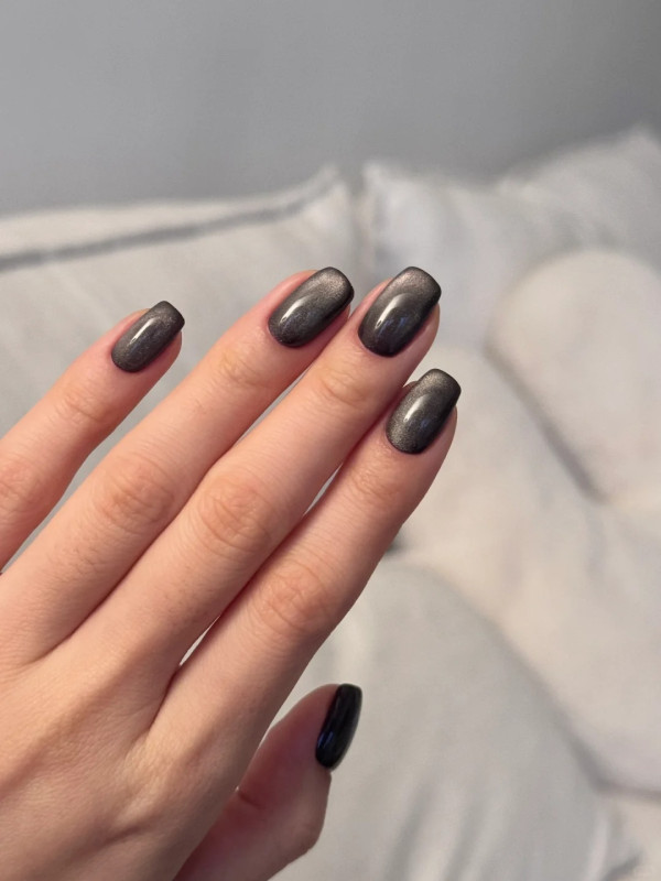 貓眼美甲的最大特點是其獨特的光澤效果,這種美甲使用含有磁粉的指甲油,通過磁鐵的操作來聚集磁粉,形成獨特的光澤和花紋,讓指尖看起來既神秘又迷人。除了基本的貓眼效果,還可以與其他元素結合,如愛心、星星、幾何圖形等,營造出甜美浪漫的氛圍。