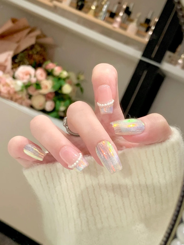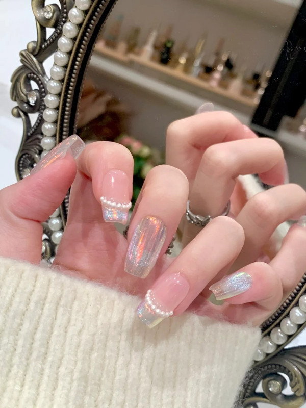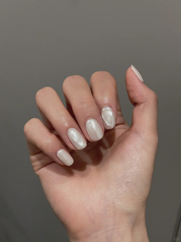 珍珠美甲是一種以珍珠色調為主的美甲風格,因其獨特的光澤和優雅感而受到廣泛喜愛。珍珠色調包括白色、淡粉色、奶油色等,具有柔和的光澤,在珍珠白的基礎上加入立體水波壓紋和小珍珠點綴,增添層次感,簡約而不失高雅。