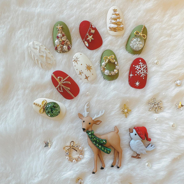聖誕節美甲當然要加入各種可愛的聖誕圖案,如麋鹿、聖誕老人、雪人和薑餅人,都是非常受歡迎的選擇,令人少女心爆發。