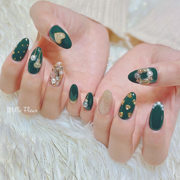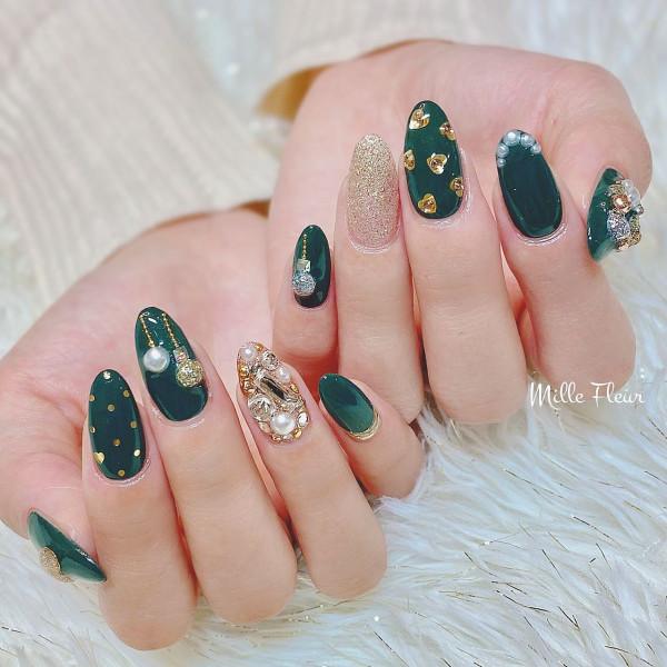 冬季暗沉色系的衣服較多,美甲加入一點亮片可以提升層次感,也非常有節日氣氛!