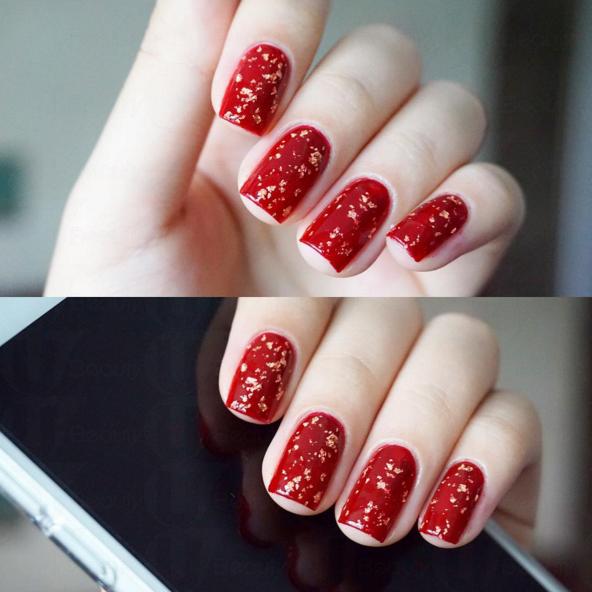 除了預約美甲師,自己也可買美甲用的金箔紙DIY,嫌麻煩的你亦可用帶金箔片(或普通金粉)的指甲油。重點是不要塗上金箔時,以免變成俗氣的土豪金指甲。
