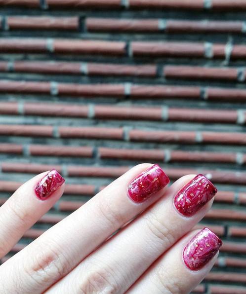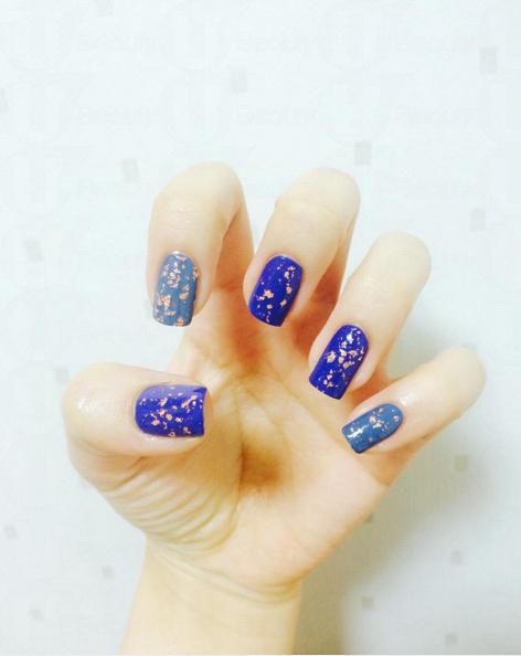 紅色粉色最保險,藍色黑色等較深的甲色亦能突出金箔,同樣吸睛!