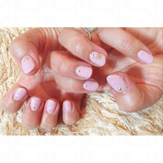 3. 粉紅色指甲加上金色的櫻花設計非常女性化,可愛之餘,更充滿春天氣息。