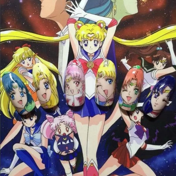 美少女戰士是不少女生的童年回憶,不知道你最喜歡的戰士是哪位呢?精緻的畫功把人物的每個細節都展現出來,真的不可小看美甲師的耐性呢。