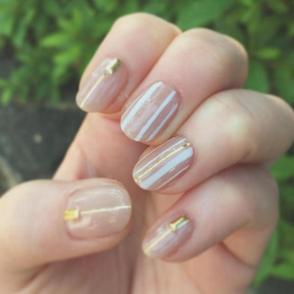 間條上衣不單只是每季必備的衣飾單品,近年很多美甲店亦很流行把間條條紋畫在指甲上,簡潔之餘又型格。直身的條子可以在視覺上拉長指甲和手指比例,配合留白效果、貼紙或其他配飾感覺就更時尚突出。
