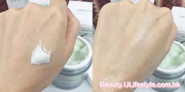 由於活氧零油分保濕啫喱霜是零油分配方,所以Gel狀質感非常輕盈,輕輕打圈按摩已能迅速滲透肌膚。