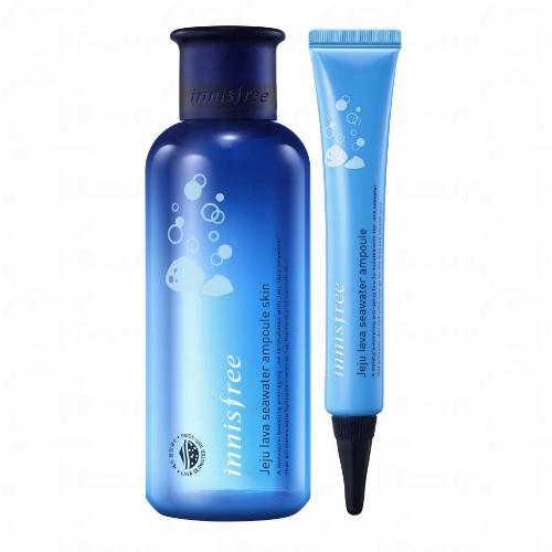 為進一步提昇柔膚水的抗氧化功效,Innisfree更特別推出濟州熔岩海水濃縮精華柔膚水。支裝濃縮精華(Ampoule)蘊含維他命E (Tocopherol)有效抑制不飽和脂肪酸的氧化,而不飽和脂肪酸正是構成細胞膜的重要成份之一,因此維他命E能保護細胞膜受到損害,維持細胞健康。為保持成份的新鮮,建議使用前才將濃縮精華擠進柔膚水新鮮混合,連續使用兩個月,保濕及效果最佳。