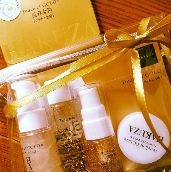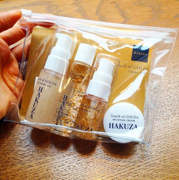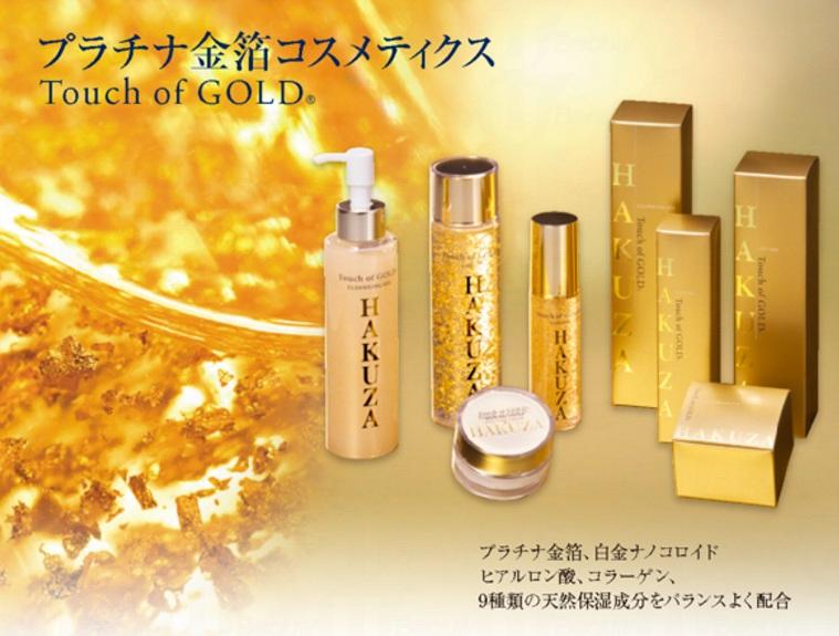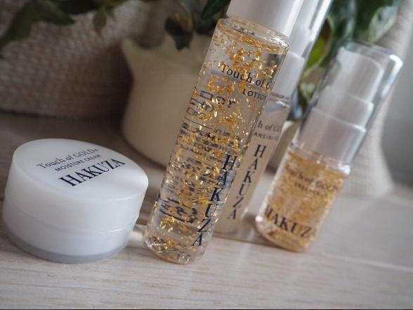 它們正是箔座(HAKUZA)所出品的Touch of GOLD金箔系列,包括了潔面啫喱、化妝水、美容液以及保濕精華。