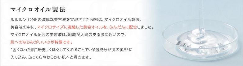 面膜以微油配方製造,蘊含Brightenyl®成份,為肌膚形成一層親人體皮膚的保護層,能夠修護肌膚,令皮膚變得柔軟光滑。lululun ONE面膜一共有兩款,包括保濕滋潤版ONE及美白版ONE WHITE。
