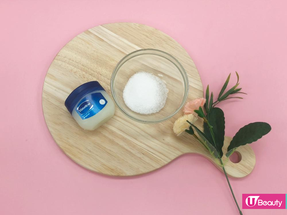 1. 以1:1比例,混合凡士林和砂糖
