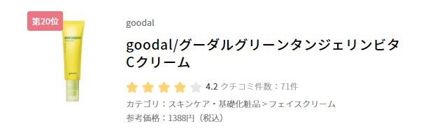 20. goodal Green Tangerine Vita C Cream (售價日元1388円含稅)