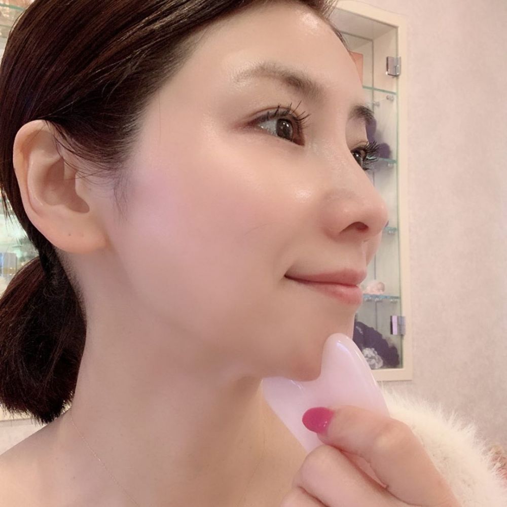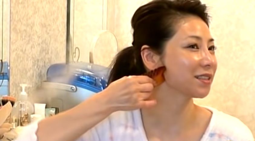 水谷雅子不時都會在網上分享刮痧的方法及好處,她提到,刮痧可以刺激到我們的淋巴位置,進而達到排毒的功效!而她亦教大家以「由下至上」的方式進行刮痧,以及可以順便按摩頸部,前者可以更有效地防止肌膚鬆弛,反後者則可以促進血液循環,改善面色~