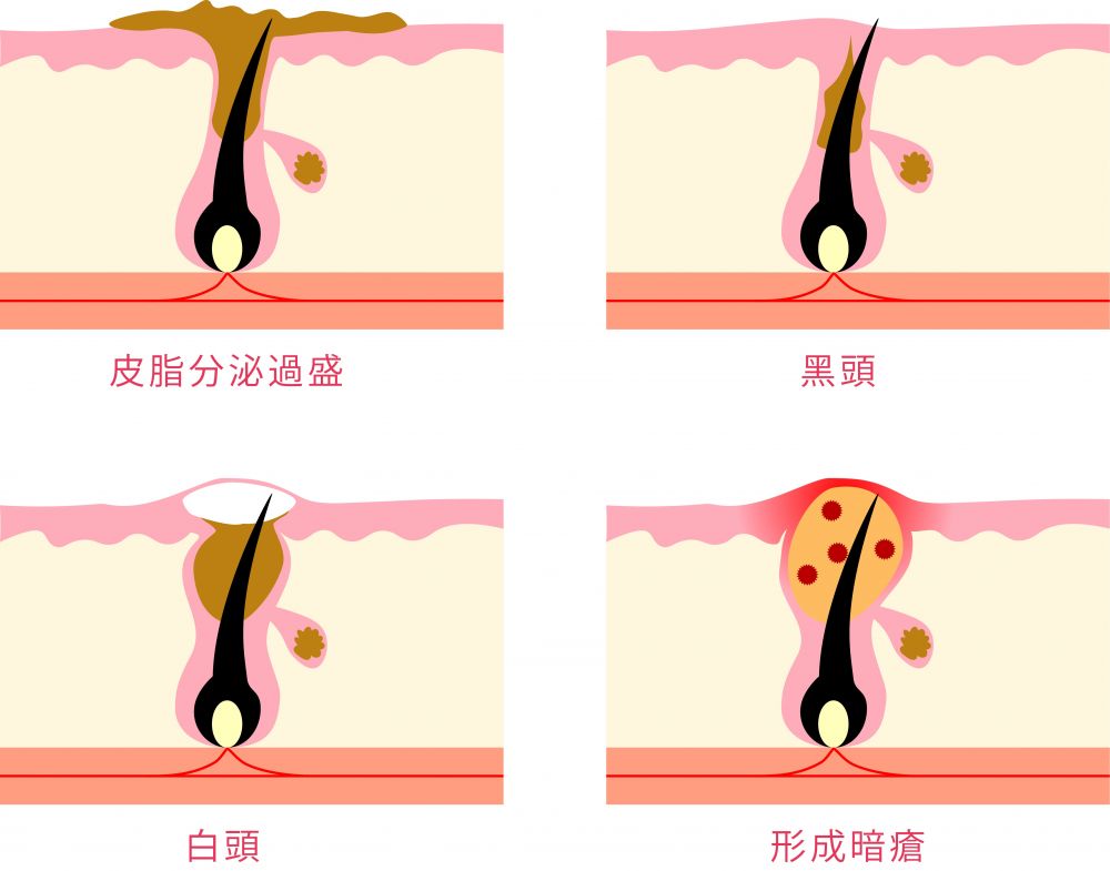 當粉刺遇上細菌感染,就會發炎形成暗瘡。「倘若暗瘡已形成,可在患處塗上黏多醣成分的面霜及含藏茴香及人參成分的精華液,提升患處的抵抗力。」Grace建議。黏多醣有助修復肌膚細胞,提升保護功能,更能為肌膚重注營養,有預防細胞受損之效;而藏茴香及人參成分則能助患處消炎,促進傷口癒合和祛痘印。(敏感皮膚人士使用該類產品前請向醫生查詢。)