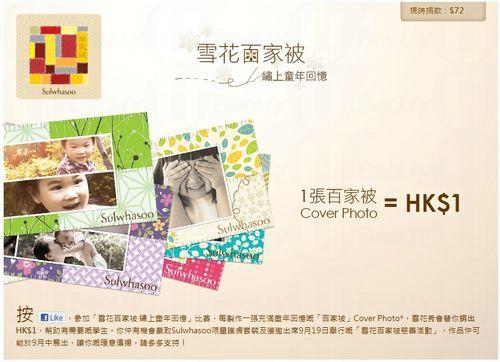 由即日起至 9 月 3 日,凡登入 雪花秀 官方 facebook 網頁,或其 iphone app,製作一張充滿自家童年回憶的「百家被」Cover Photo ,再以 80 字分享你或你的孩子之童年回憶,雪花秀即會捐出 HK$ 1 給「Summerbridge Hong Kong 夏橋」,為本地缺乏學習機會的學童伸出手援手。