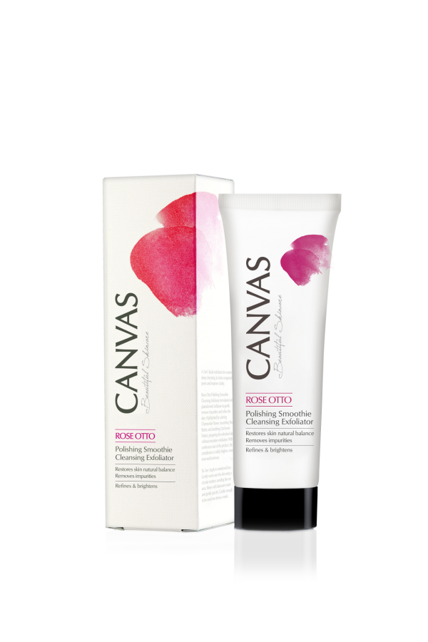 CANVAS Rose Otto Polishing Smoothie Cleansing Exfoliator 針對日常深層清潔,潔面及去角質 2 合 1,以植物纖維微粒去除老化角質細胞和污垢,並改善膚質,配方中加入有鎮靜功效的洋甘菊、深層滋養肌膚的乳木果和紓緩補濕的燕麥。
