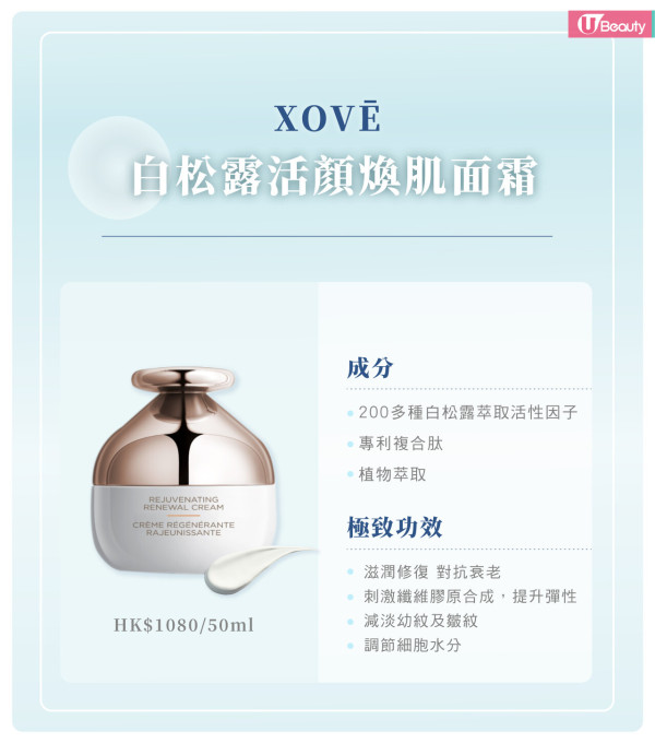 XOVĒ白松露活顏煥肌面霜以白松露的豐富萃取物為特色,適合尋求豐富滋養和抗衰老效果的25+女生。結合200多種白松露萃取活性因子、專利複合肽和植物萃取,這款面霜能滋潤修復肌膚,對抗衰老,刺激纖維膠原合成,提升肌膚彈性,減淡幼紋及皺紋,調節細胞水分。