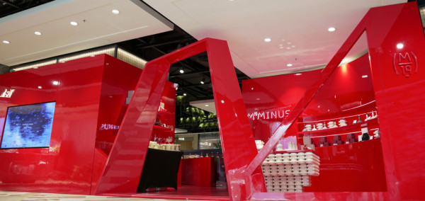M19Minus首間門市位於K11 MUSEA地庫一層,以熱賣得奬系列the PURGE的高貴紅色為主調,店內設計融入品牌美學元素,充分展現對護膚科技的創新追求。店內獨特設計的紅色花瓶洗手盆、從天而降的清水、以the BUND頭髮及身體護理系列外盒砌成的展示檯……讓顧客走進M19的奇妙唯美國度,在這個充滿藝術氛圍的環境中,享受護膚的每一刻。