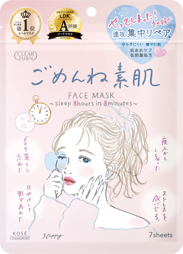 KOSÉ旗下的Clear Turn系列是藥妝店面膜界的皇牌,以其種類繁多、性價比高和針對性強的而著稱!面膜主打8分鐘快速護理概念,在短時間內提供高效保養。品牌常與人氣插畫師合作設計包裝,憑其可愛的插畫包裝而大受歡迎!