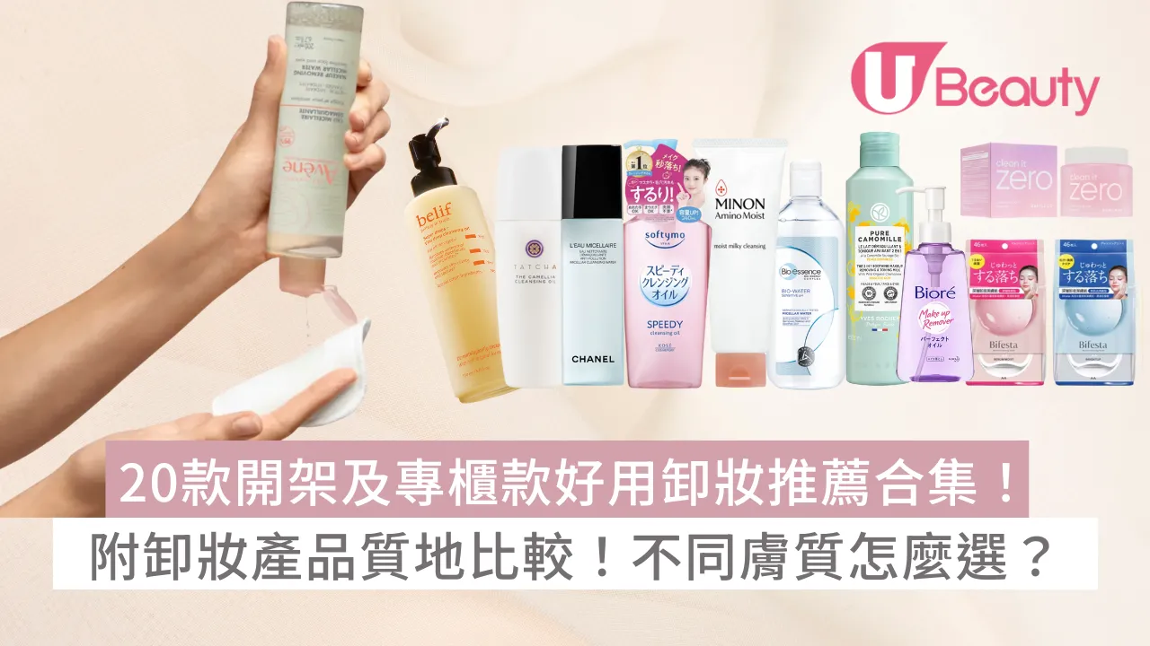 卸妝推薦合集|用什麼卸妝最乾淨?什麼膚質適合用卸妝油?哪一種卸妝好用?在美妝界常常流傳「早上花多少時間化妝,晚上就該用多少時間卸妝」。這句話不但是對卸妝程序的重視,更揭示了卸妝是所有保養程序的基石。若卸妝不徹底,殘留的彩妝、油脂會堵塞毛孔,引發粉刺與痘痘。在這樣的肌膚狀態下,即使塗抹再昂貴的精華與面霜,也是徒勞無功。因此,今次U Beauty將深入解構20款市場上備受矚目的人氣卸妝產品,從膚質需求到真實用戶評價,助你在眾多選擇中,找到那款最適合你的卸妝產品!