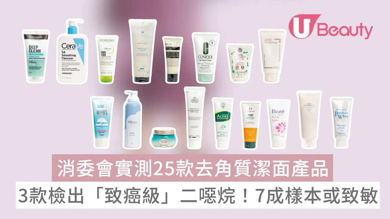 消委會|消委會去角質潔面產品|很多人會選擇有去角質功效的潔面產品,期望趕走粉刺、暗瘡和粗糙暗啞,但要小心!消委會早前檢測了市面上 25 款去角質潔面產品,涵蓋了果酸、水楊酸、酸鹼值(pH)、香料致敏物和二噁烷等關鍵項目。結果有產品竟驗出可能致癌物,更有高達 7 成樣本暗藏致敏風險!