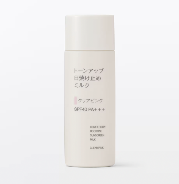 這支新出的潤色防曬乳液在網上被譽為「偽素顏必備」!提亮膚色防曬乳液 (トーンアップ日焼け止めミルク)擁有 SPF40 / PA+++ 的防曬力,質地水潤易推,完全不會有黏笠感。最加分的是它帶有自然的提亮效果,可以修飾暗沉和膚色不均,更直接當作妝前乳使用,後續上粉底會更加貼服。有兩種色調選擇(淡米色、透明粉紅色),輕鬆打造日系水潤透亮底妝。