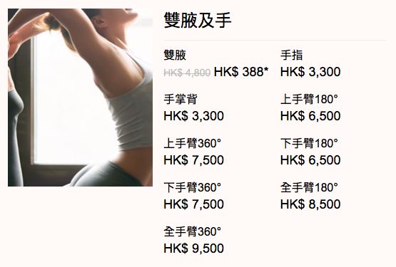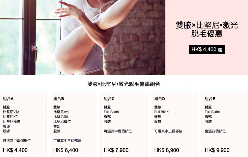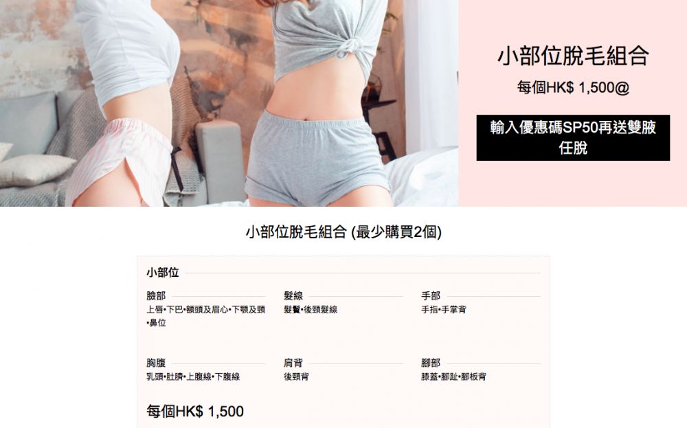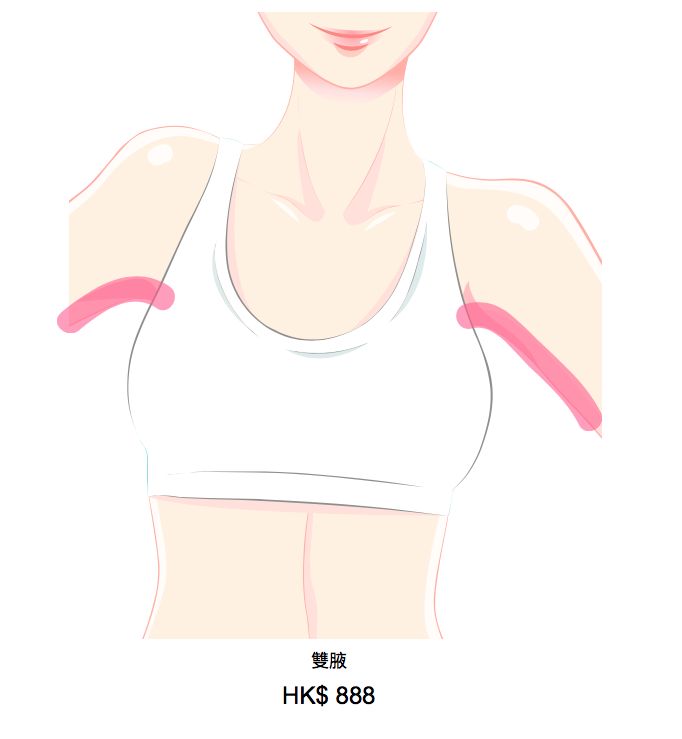 20BEAUTY有各款不同部位選擇,而進行腋下療程只需HK$888