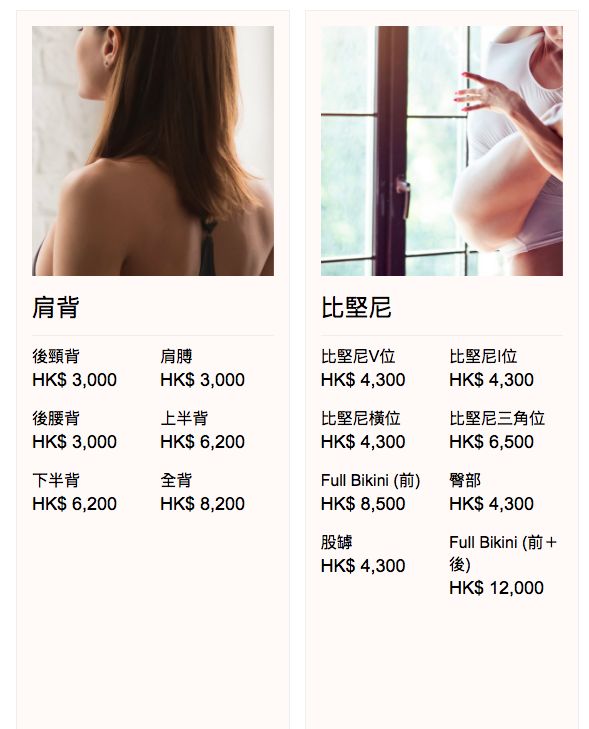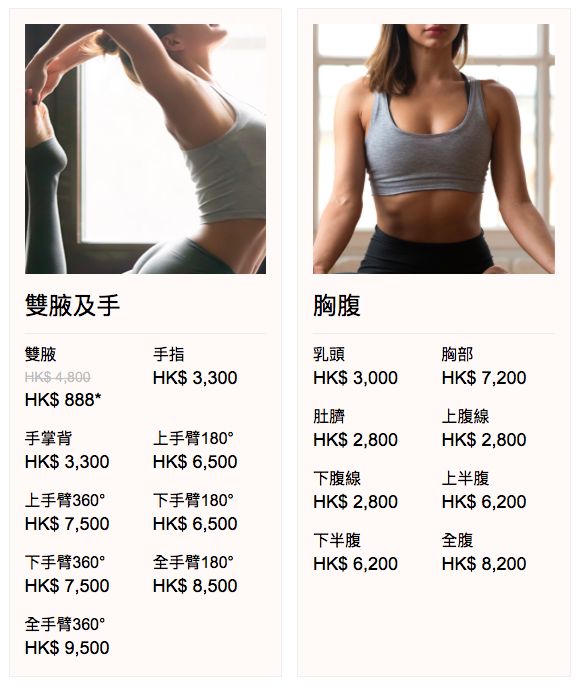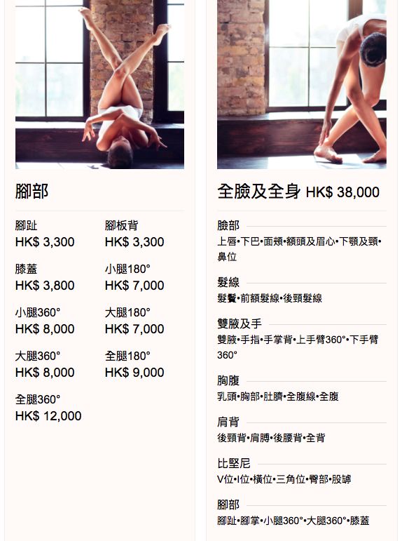 由於不同治療師、時段及部位的收費各有不同,所以有興趣的女生能到dermes官方網站了解更多。
