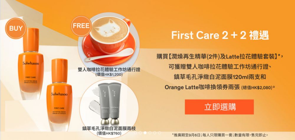 由即日起至9月16日,雪花秀正推出購物優惠,買精華送白泥面膜!買2支更可獲贈聯乘Café Amber House的期間限定Orange Latte換領券2張及Latte Art拉花工作坊2人同行參加名額!詳情請即上雪花秀官網/親臨門市查詢~