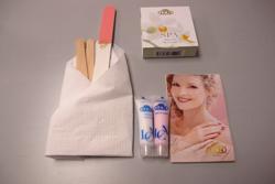 4‧為指甲塗上護甲油後,再用三色甲挫的白色作導入;然後用甲挫的灰色一面作甲面抛光護理後,再根據自己需要,以白茶花潤手霜或防皺潤手霜作最後護理,整個護手步驟大功告成!