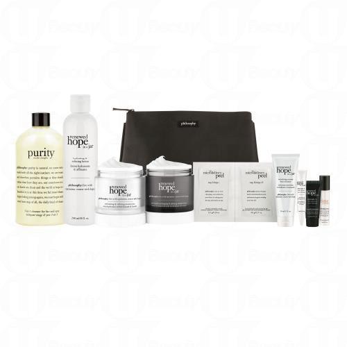 套裝包括:purity made simple 3-in-1 cleanser for face & eyes 480ml + when hope is not enough hydrating anti-oxidant serum 30ml + renewed hope in a jar refreshing & refining moisturizer 60ml + renewed hope in a jar overnight recharging & refining moisturizer 60ml