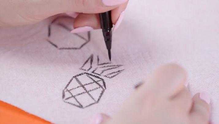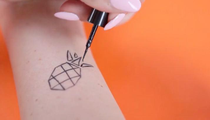 2. 以防水眼線液將圖案畫在皮膚上,如有畫錯,可用卸妝水抹掉。