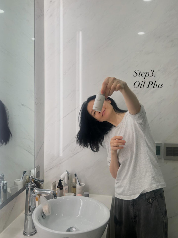 萬用護膚油 (OIL PLUS):洗臉後立即塗抹於臉部、頸部、手背甚至指甲。李英愛強調這是不分膚質、四季必備的 Daily Item。