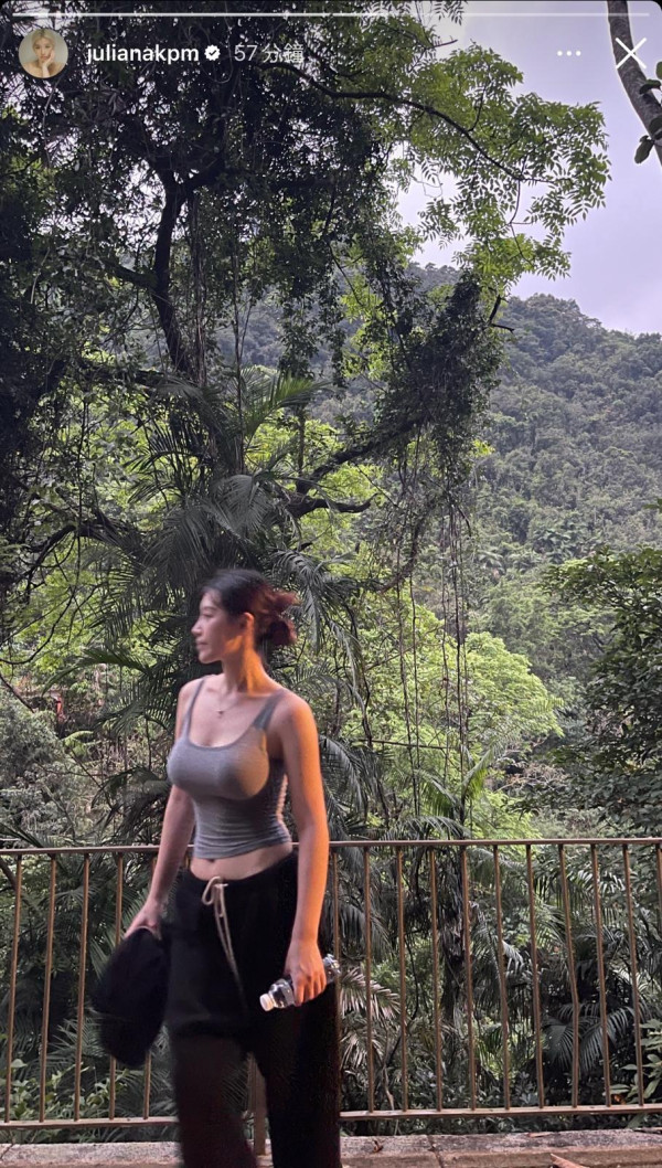 郭珮文憑豐滿的上圍被網民封為「宅男女神」,人氣急升的她不時都會在社交平台發放福利照,早前她在限時動態分享行山以及在峇里旅行的照片,最吸引網民目光的必定是她當天的一身造型。從Juliana分享的相中可見,當天她身穿超緊身灰色小背心,配搭黑色休閒長褲,展現出玲瓏浮凸的魔鬼身材!