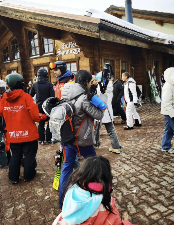 後來有網民在瑞士的滑雪聖地遇到他們一家滑雪,在平安夜那天碰到二人帶著子女逛街。而在聖誕節那天在滑雪地的纜車地方遇到他們,並拍下相片分享在社交網。相中看見,當時霍啟剛抱著三份雪板,真的是廿四孝爸爸。