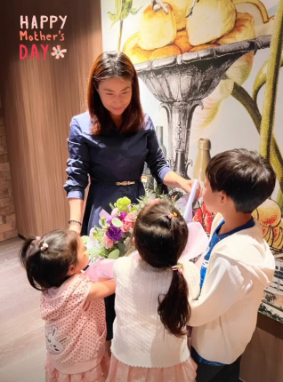 郭晶晶婚後育有大仔霍中曦、二女霍中妍及細女霍中怡,專注家庭的她嫁入豪門後依然十分貼地,最近與老公霍啟剛一家五口低調現身藝術展覽被網民野生捕獲,當夫婦二人與同行者欣賞畫作時,兒子耐心在旁等候的舉動被網民大讚「好有家教!」。
