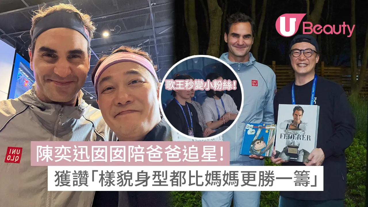出名熱愛網球的陳奕迅(Eason),最近就到上海參與《上海勞力士大師賽 費達拿超級摯友之夜》,觀賞偶像費達拿與中國網球一哥張之臻、乒乓球王子樊振東對打,最後Eason更有幸與費達拿合照!而Eason的太太徐濠縈以及囡囡陳康堤都有一同到場觀賽,康堤見到爸爸變成小粉絲的情景更取笑他,非常搞笑。