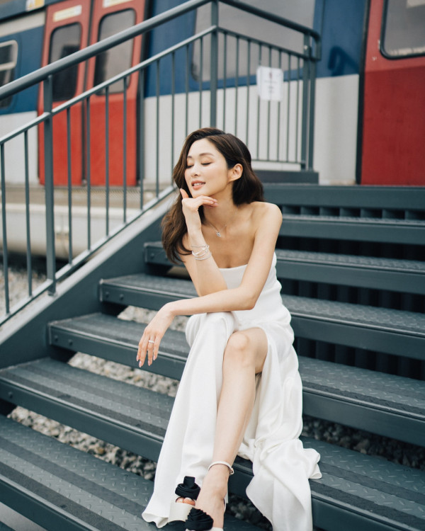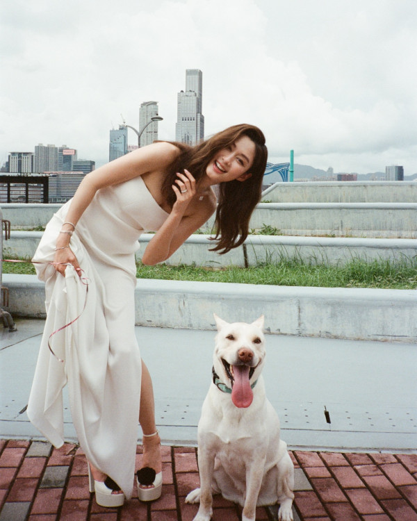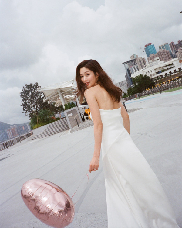 香香雖然身為兩子之母,但身材依然fit到漏,相中她身穿白色高衩露背晚裝兼手中拿起粉紅色心心氣球在海濱公園穿梭,大晒白滑長腿及玉背,其中一張回眸相更是索到爆,網民紛紛畀like!
