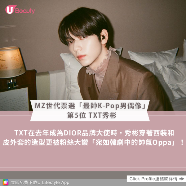 最近韓網MZ世代票選「最帥K-Pop男偶像」結果出爐了!「MZ世代」是指於1981年至2010年間出生的人,今次上榜的Seventeen成員珉奎、「臉蛋天才」車銀優、BTS成員V都輸了給這位新生代男團成員!